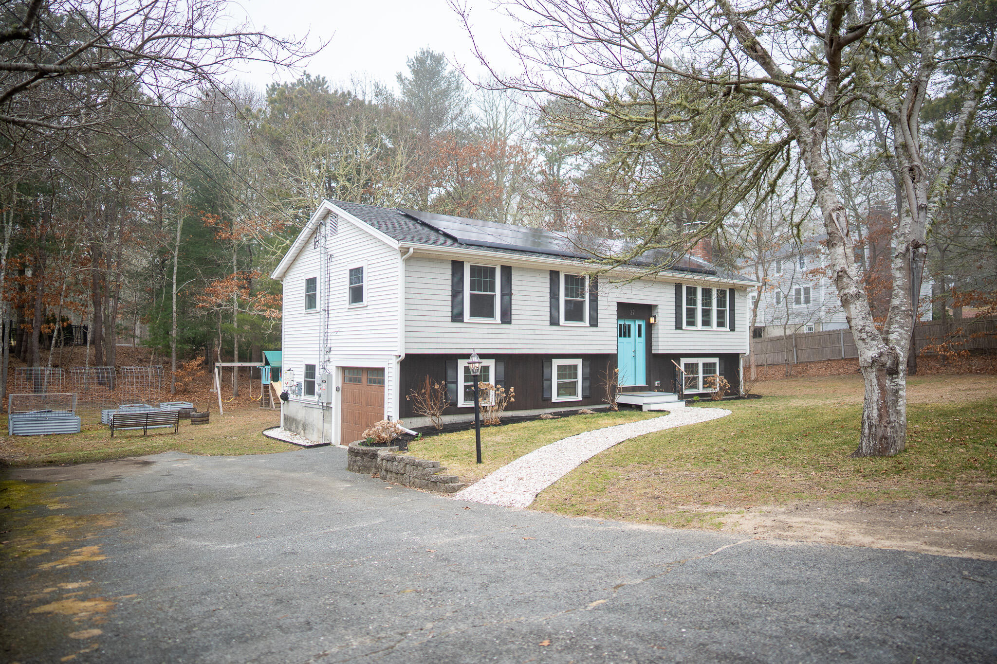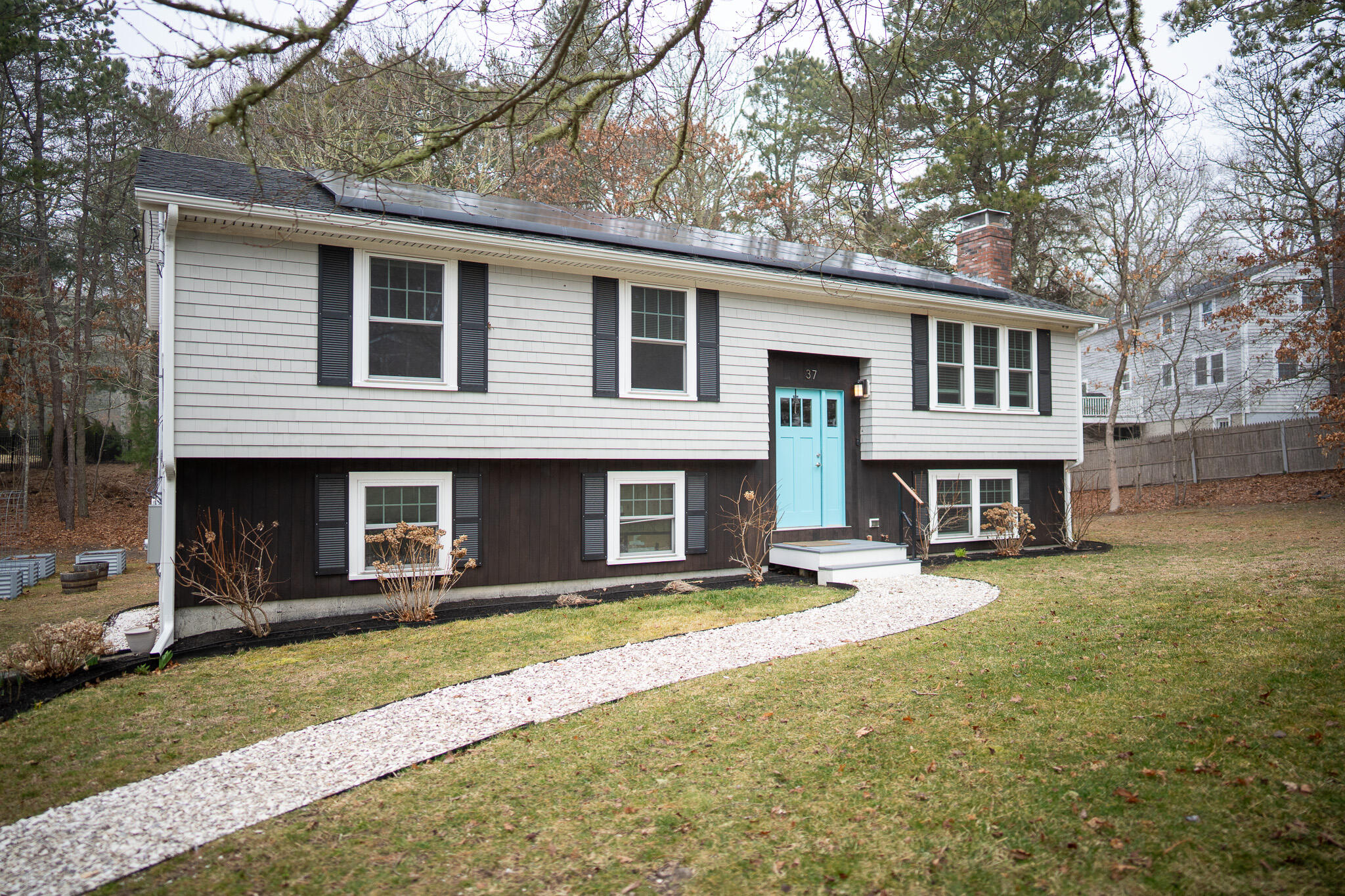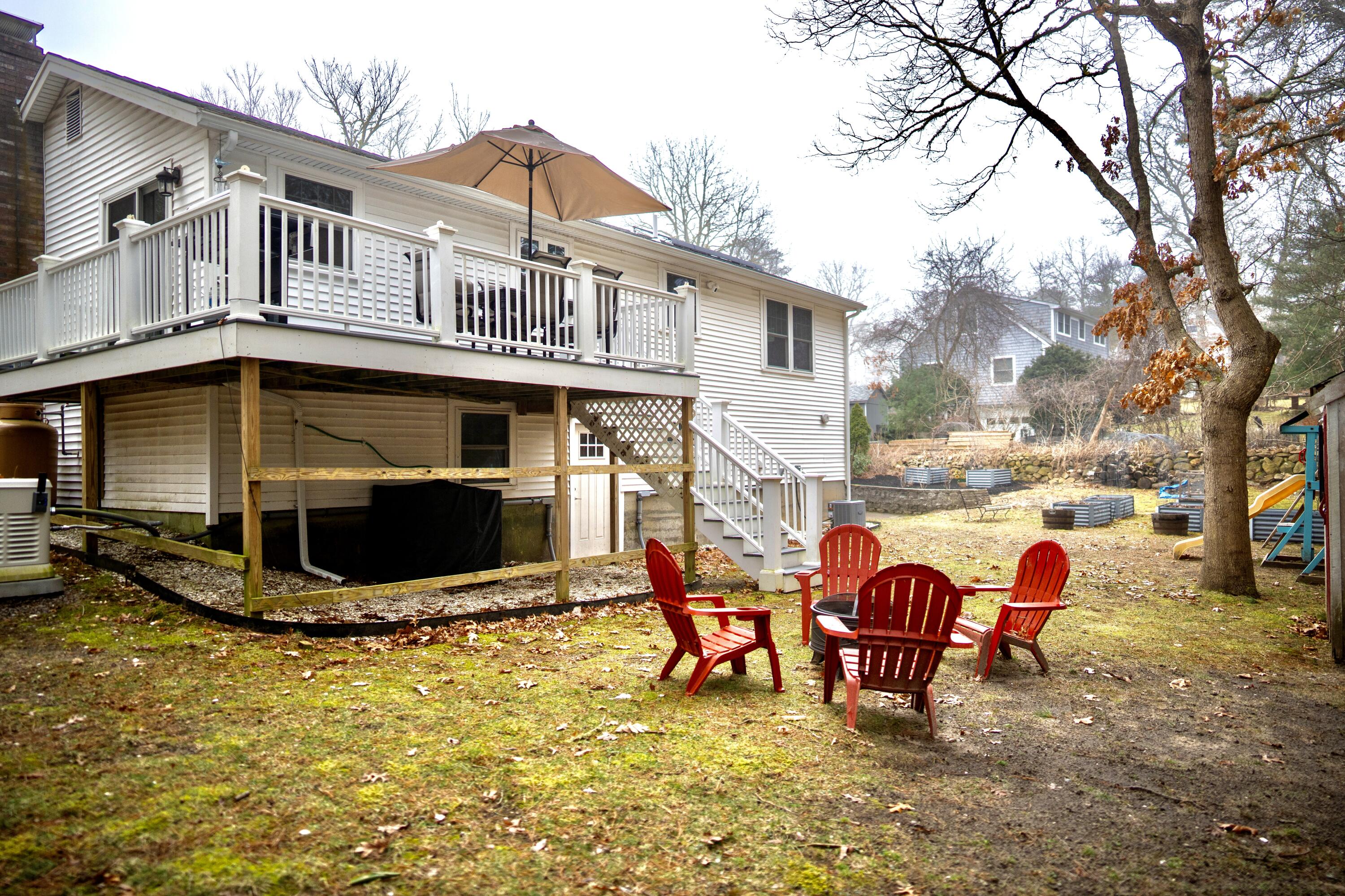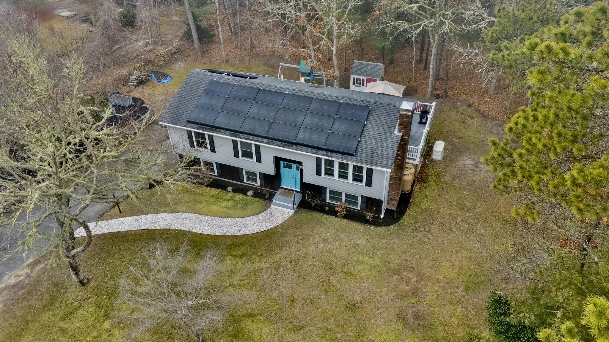 Mid-century modern meets Cape Cod convenience: Your Osterville-adjacent home awaits! This delightful Cape Cod raised ranch offers the perfect blend of practical comfort and contemporary updates. Step inside to discover a bright and inviting living space featuring a beautifully updated kitchen with modern appliances - perfect for entertaining or preparing family meals. The home has seen numerous recent updates including new HVAC, 200 AMP electrical service, and updated siding, windows, and doors. A whole-house generator provides added security, and solar panels offer energy efficiency. The generous lot has ample room for a future pool in the backyard, given that the septic system, updated in 2008, is located in the front. Enjoy seamless indoor-outdoor living with a spacious wrap-around deck, flex space inside with the bonus room, and room for parking and storage in the attached garage. A unique financial feature of this home is the assumable low-interest VA loan, giving qualified buyers expanded purchasing power and/or a lower mortgage payment than they might have expected.
