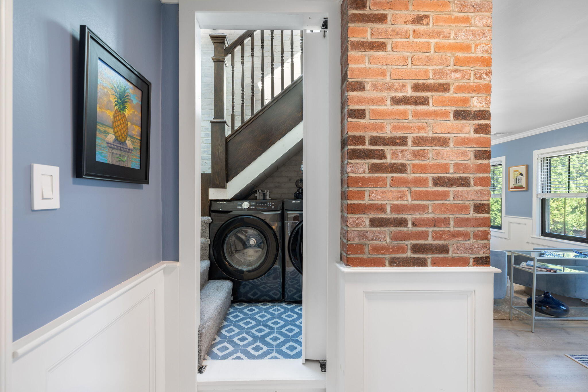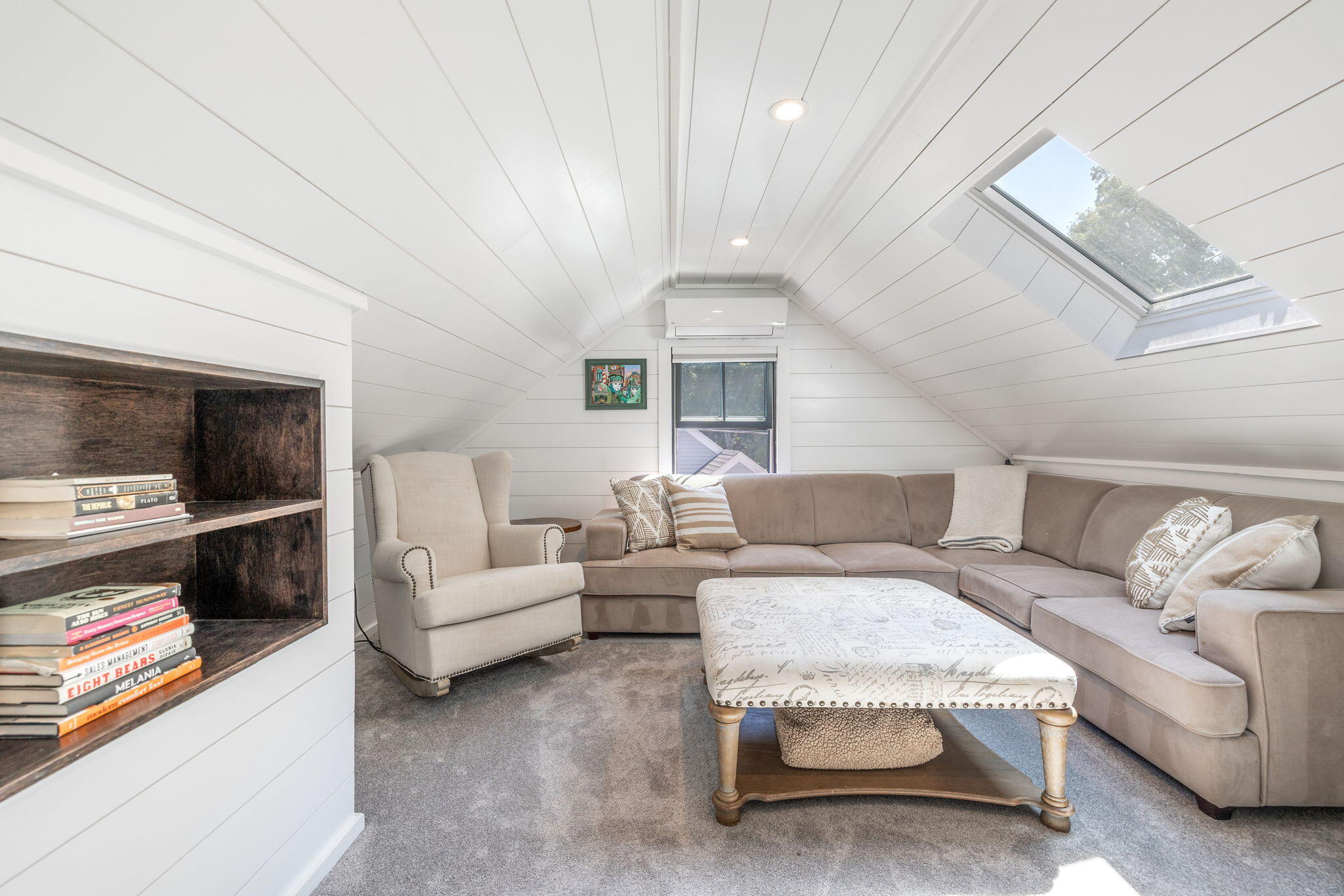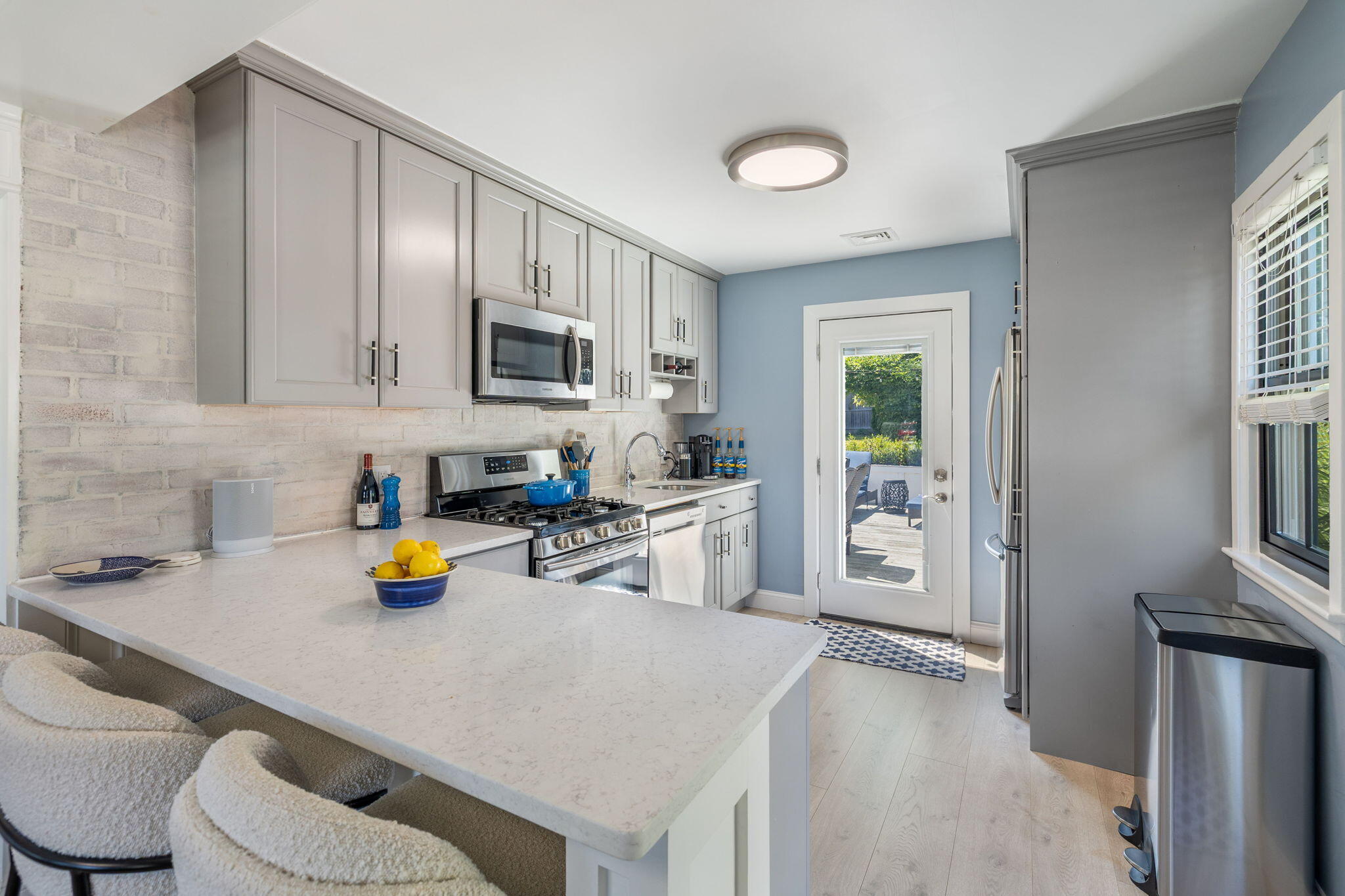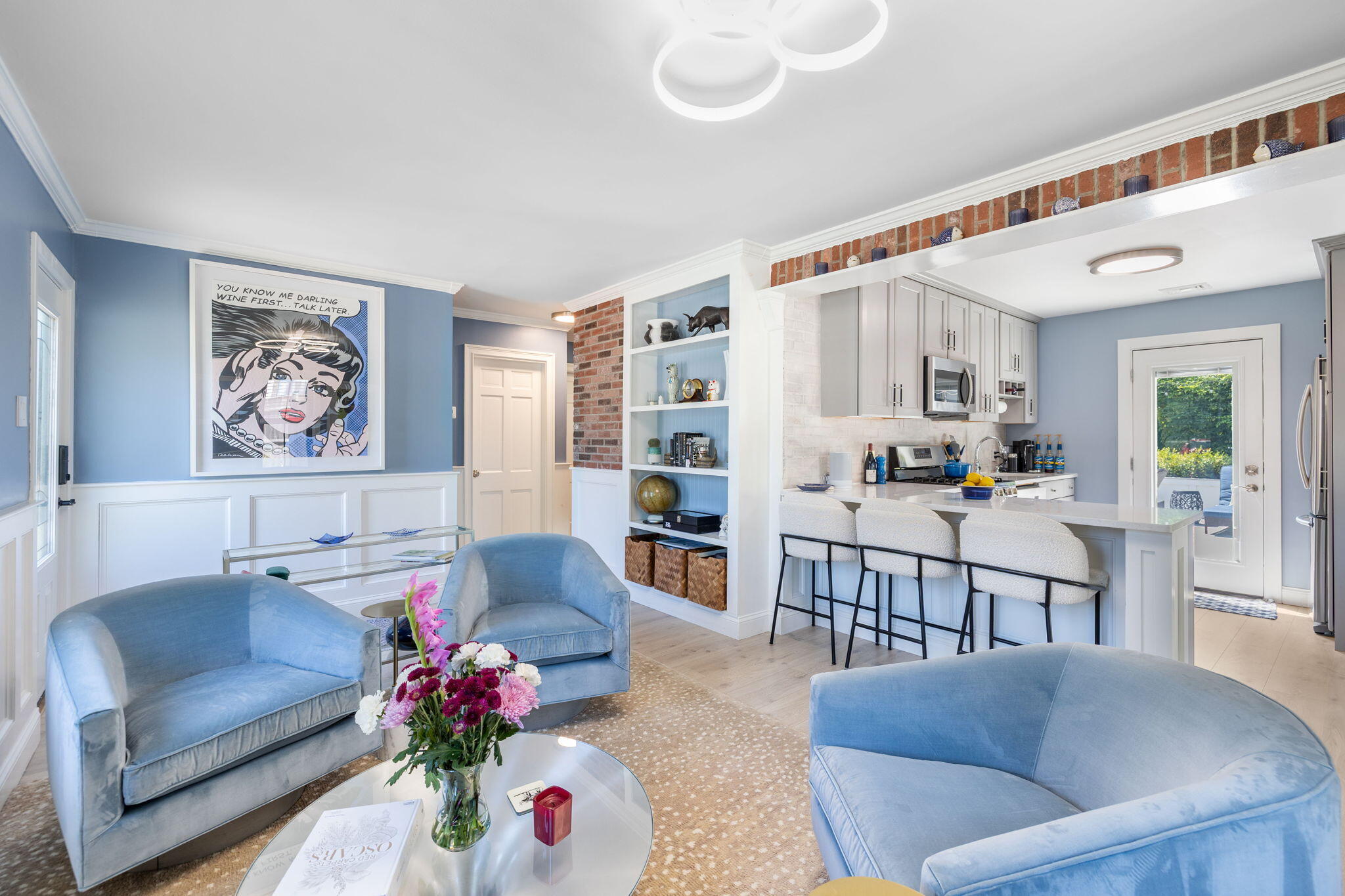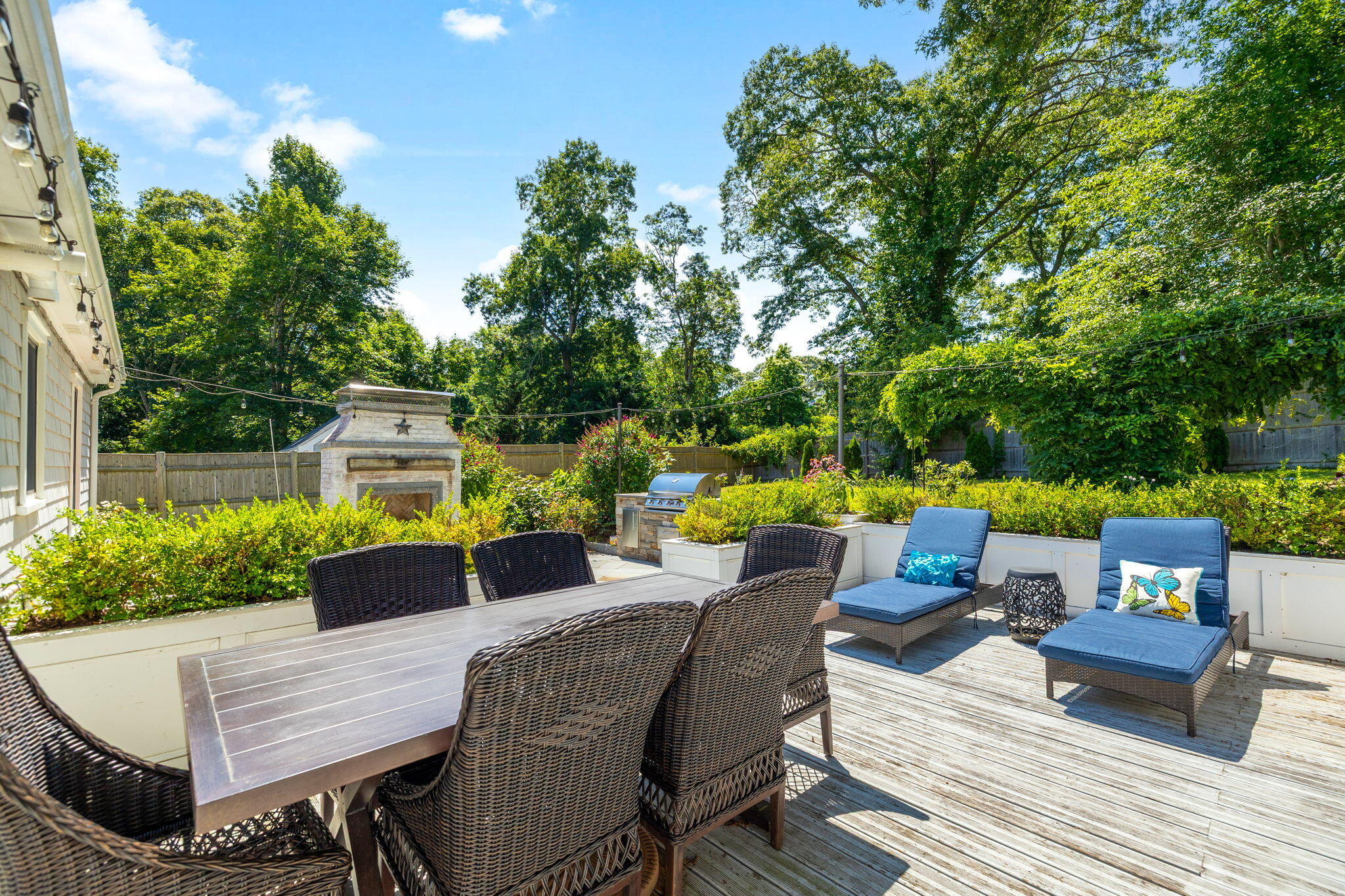 Welcome to a home a half mile from the center of Falmouth Village. The entire property reads like a story book beginning with a herring bone brick walkway lined with lavender perennials & lush blooming gardens all around. An interior that greets you with sophisticated colors, built in bookcases, exposed brick accents in an open flow space leading to a modern kitchen. Through the backdoor is an oasis of purposeful plantings surrounding custom stonework creating ideal outdoor living spaces with a focal point wood burning fireplace & designated grilling station. The custom flower box planters carve out spaces used for dining & lounging with a crafty putting green. Additionally, the open lawn gives room for games, gardening & a storage shed. Back inside the remaining first floor include a primary, second bedroom and full bathroom. The second floor is sundrenched & accessed through a bookshelf that hides the staircase with a custom-built swinging door. At the base of the stairs is a laundry nook. Up the winding staircase is the quietest den and office nook. This area can also be used as the third bedroom. Home can be sold with the majority of furnishings in place.