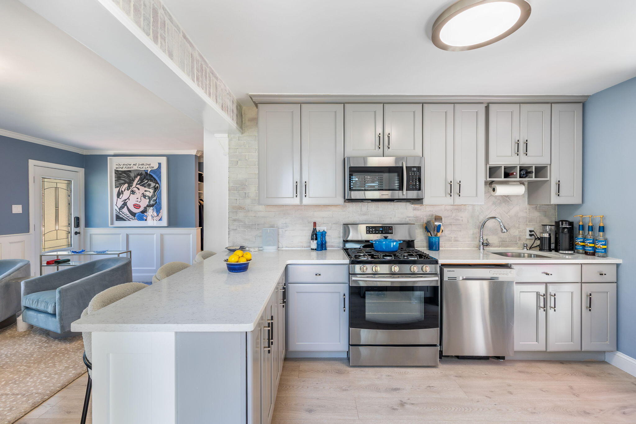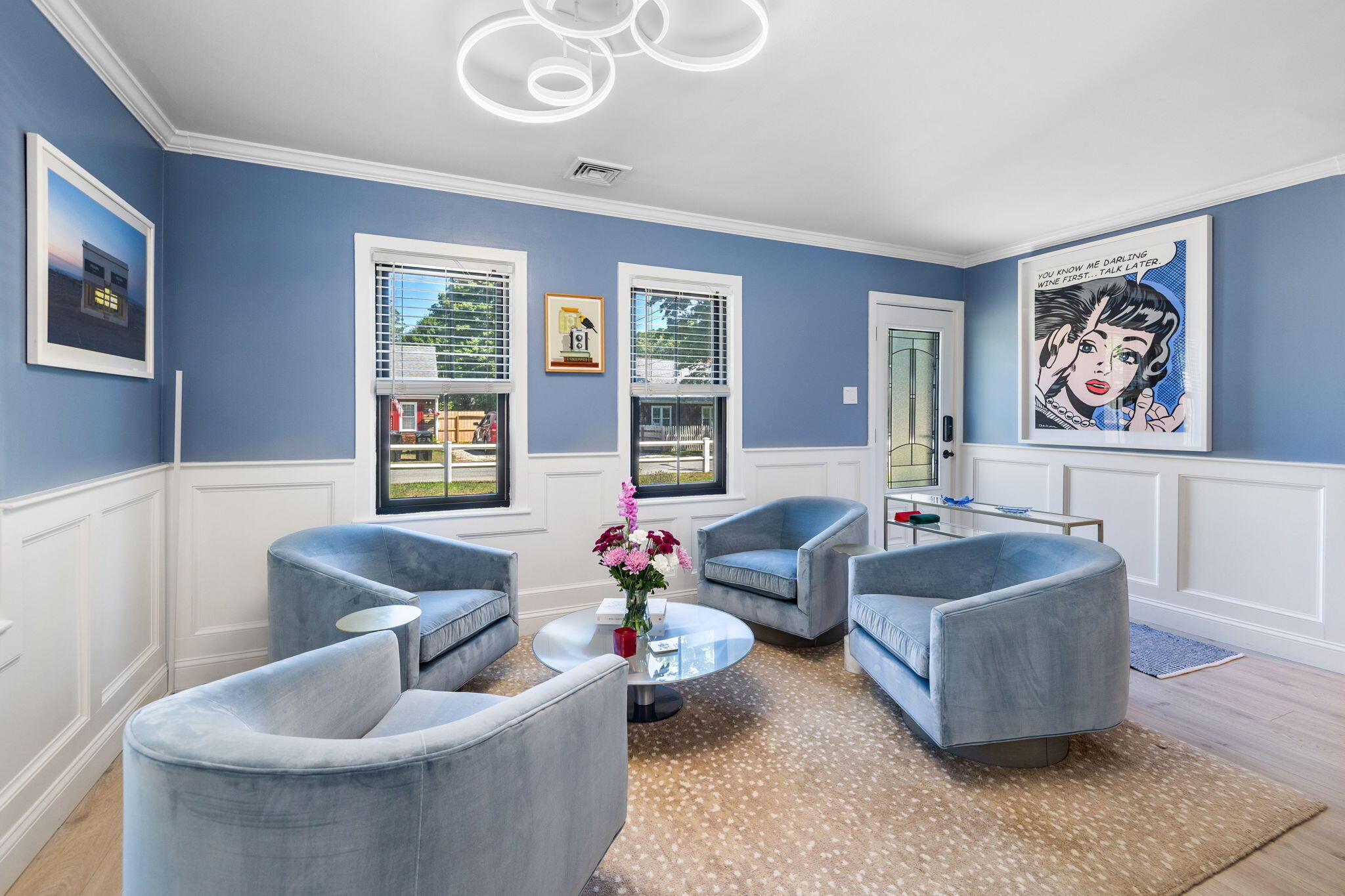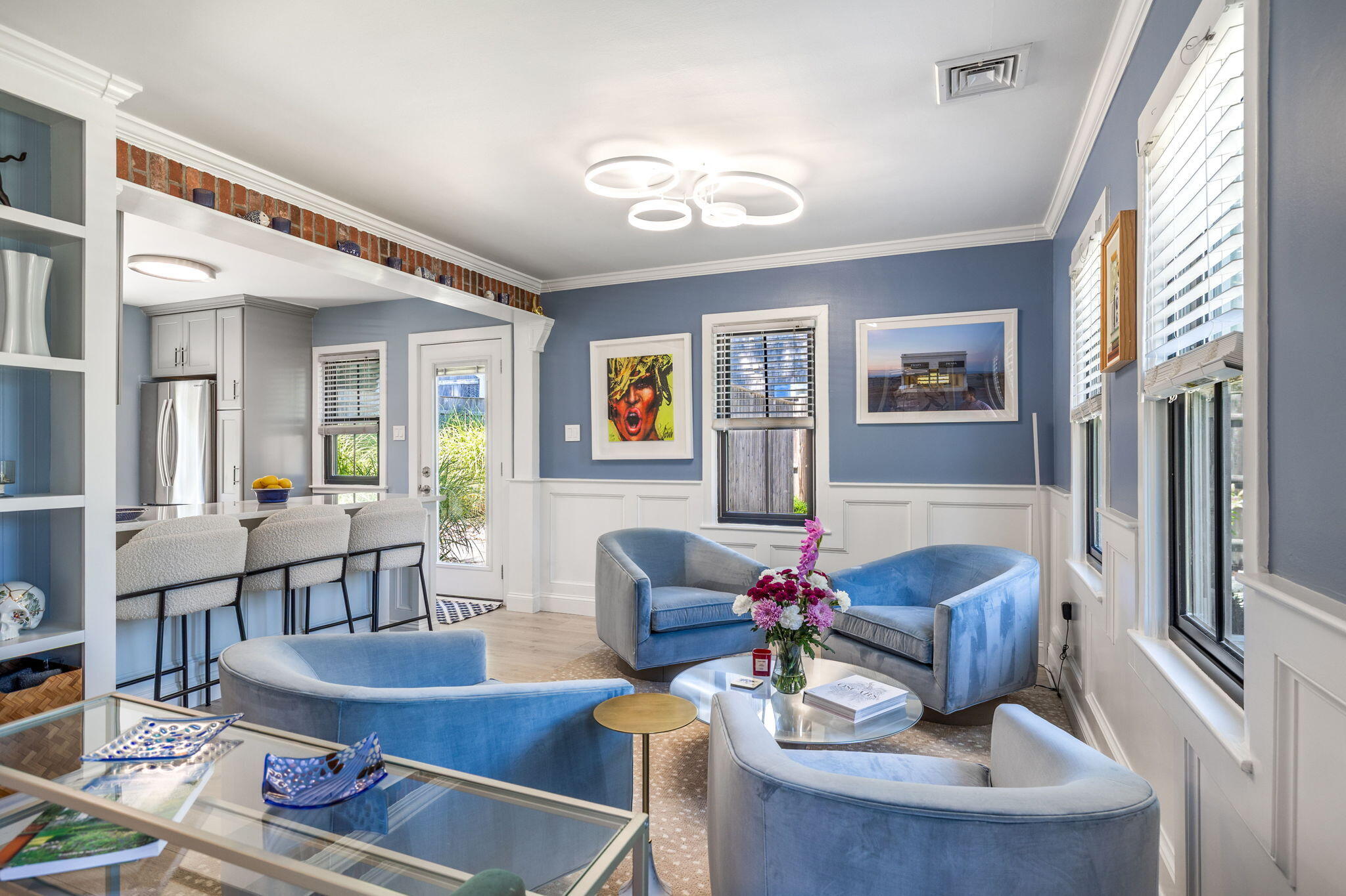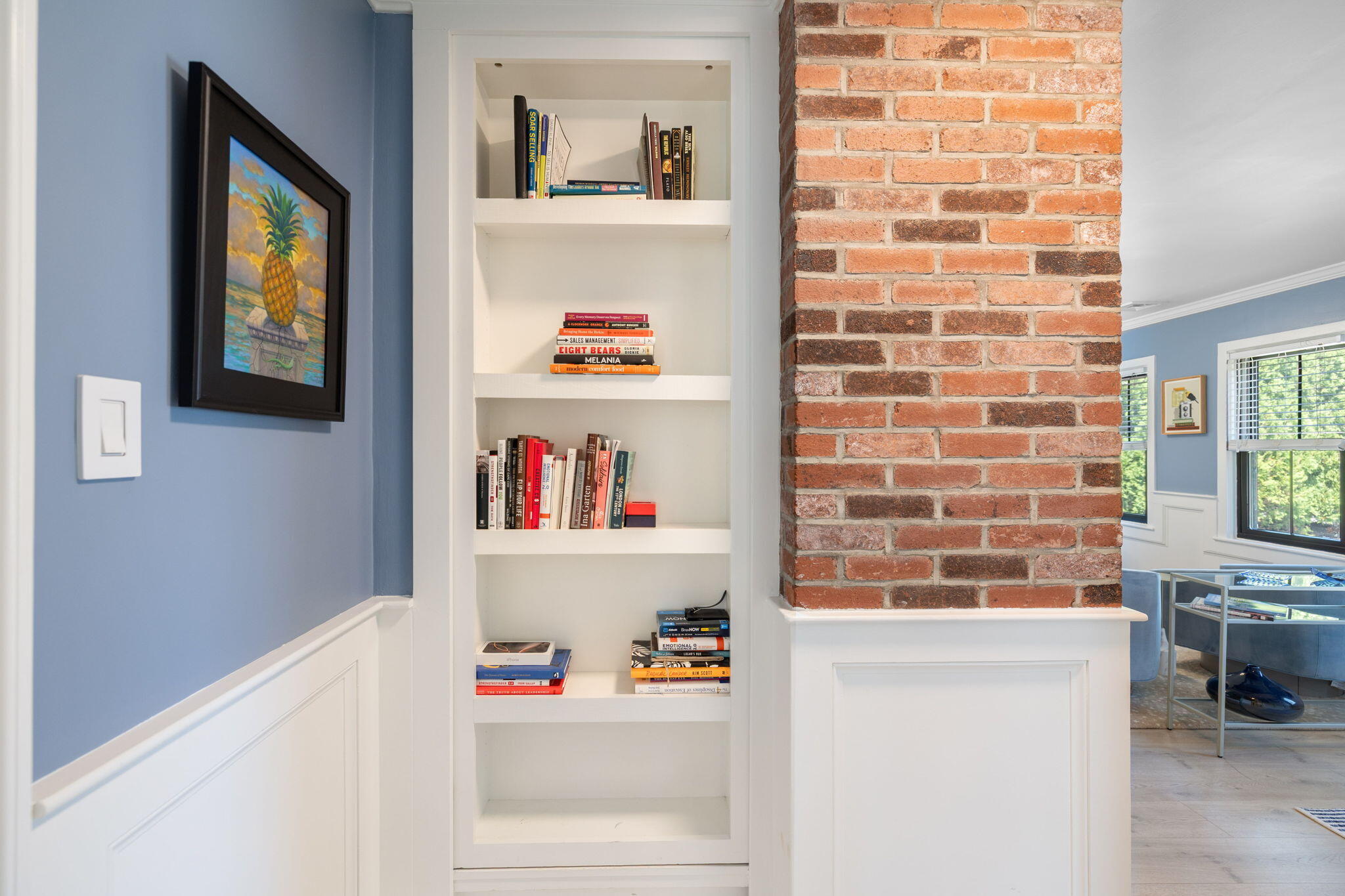 Welcome to a home a half mile from the center of Falmouth Village. The entire property reads like a story book beginning with a herring bone brick walkway lined with lavender perennials & lush blooming gardens all around. An interior that greets you with sophisticated colors, built in bookcases, exposed brick accents in an open flow space leading to a modern kitchen. Through the backdoor is an oasis of purposeful plantings surrounding custom stonework creating ideal outdoor living spaces with a focal point wood burning fireplace & designated grilling station. The custom flower box planters carve out spaces used for dining & lounging with a crafty putting green. Additionally, the open lawn gives room for games, gardening & a storage shed. Back inside the remaining first floor include a primary, second bedroom and full bathroom. The second floor is sundrenched & accessed through a bookshelf that hides the staircase with a custom-built swinging door. At the base of the stairs is a laundry nook. Up the winding staircase is the quietest den and office nook. This area can also be used as the third bedroom. Home can be sold with the majority of furnishings in place.